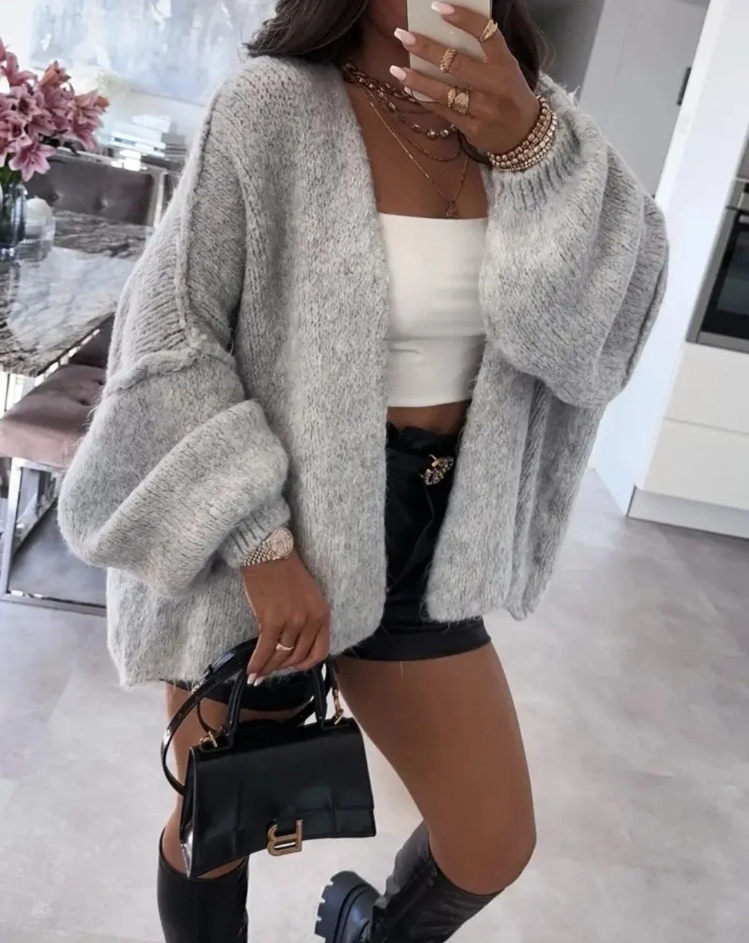 Cuddle sweater vest is super soft and really comfortable to wear that is a one size fits all. This cute vest is an open vest, so there’s no buttons or fastener. This sweater vest also has balloon sleeves.
